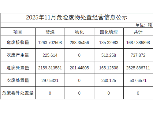 2025年11月危險(xiǎn)廢物處置經(jīng)營信息公示