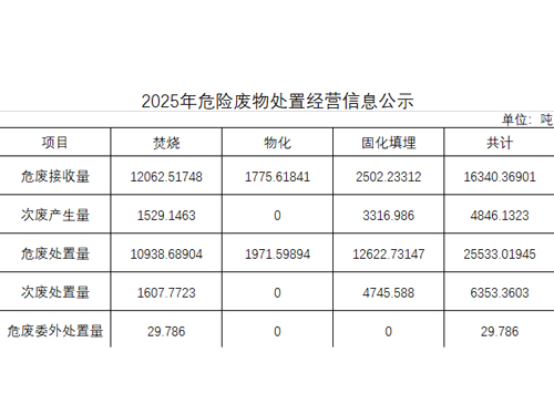 2025年危險(xiǎn)廢物處置經(jīng)營信息公示