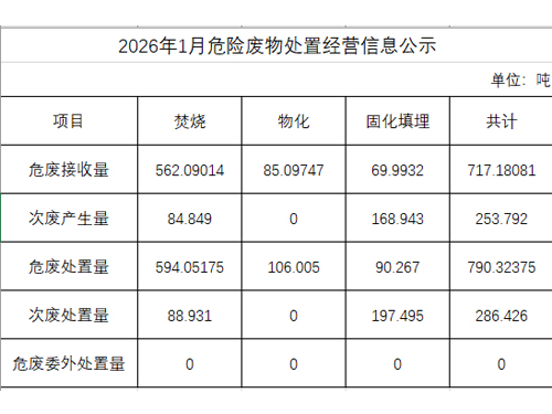 2026年1月危險(xiǎn)廢物處置經(jīng)營信息公示