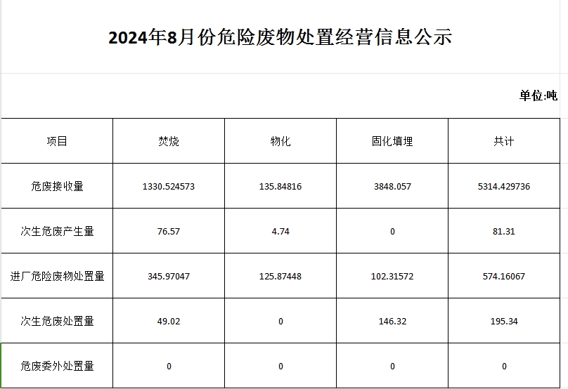 8月危險(xiǎn)廢物處置經(jīng)營信息公示