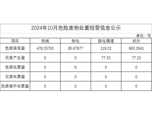 2024年10月危險(xiǎn)廢物處置經(jīng)營信息公示