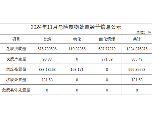 2024年11月危險(xiǎn)廢物處置經(jīng)營信息公示
